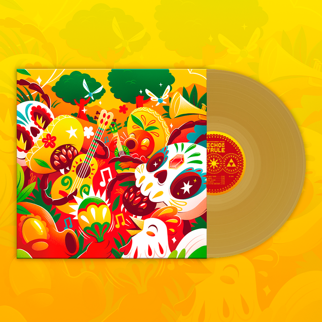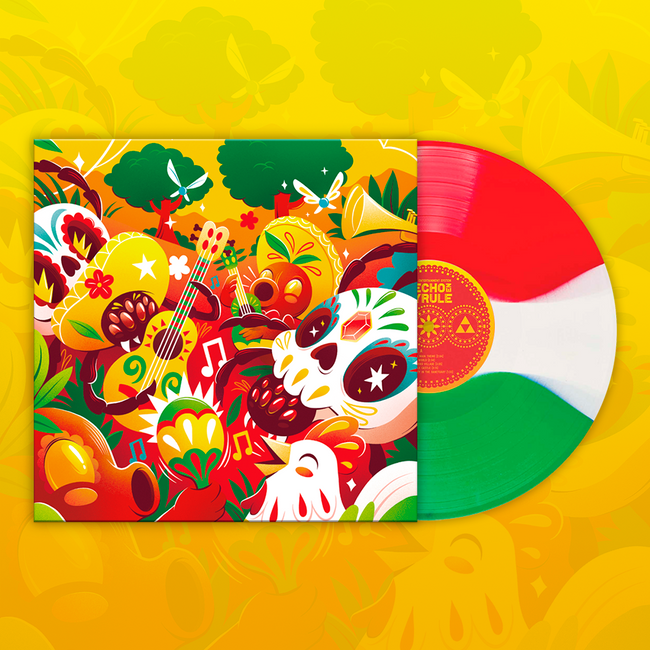 Hecho En Hyrule is presented on 180g Mexican Flag colored vinyl and Tequila colored vinyl, a heavy stock embossed jacket, and a printed inner sleeve.