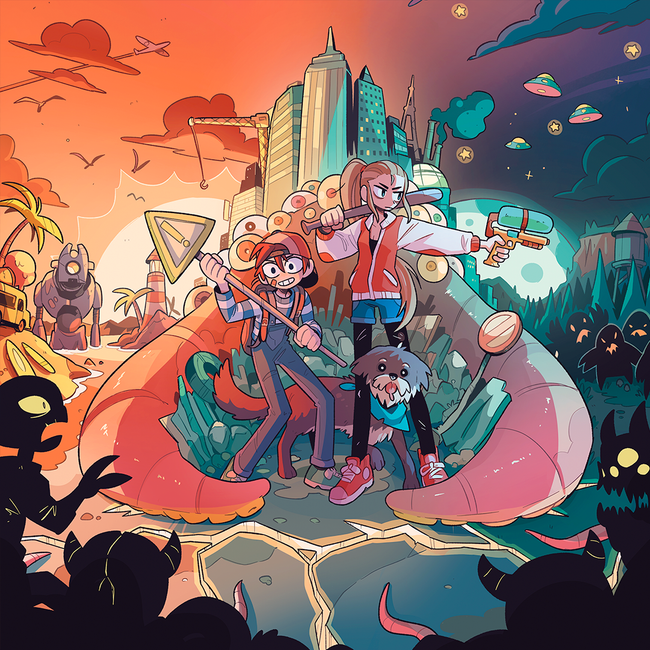 Defenders of Eastwood is a fictional 2-player co-op 2D side scrolling brawler. Composer niftyneatclub created the concept for this fictional game, complete with a storyline, list of playable characters, collection of story-essential NPCs, levels, usable weapons, and usable item list. Using this concept as a means of inspiration, niftyneatclub has created a vibrant, upbeat, chippy synth soundtrack that breathes life into an otherwise nonexistent video game.